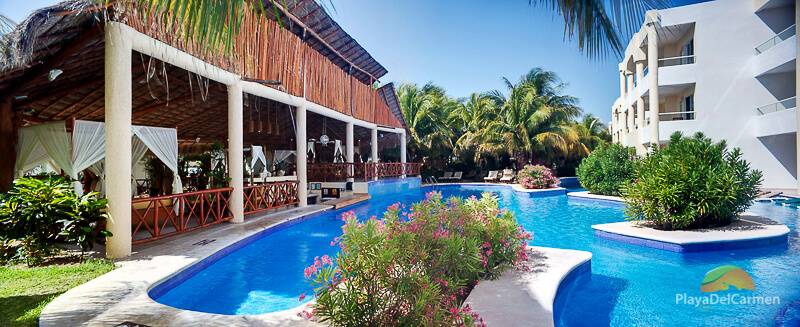 During the day swim up to one of 4 swim-up bars offering a variety of exotic drinks. At night sample the local offerings at the tequila, mezcal or margarita bar, enjoy evening entertainment and an after dinner drink while lounging on a bar swing or relax poolside with drink in hand while enjoying the evening air.